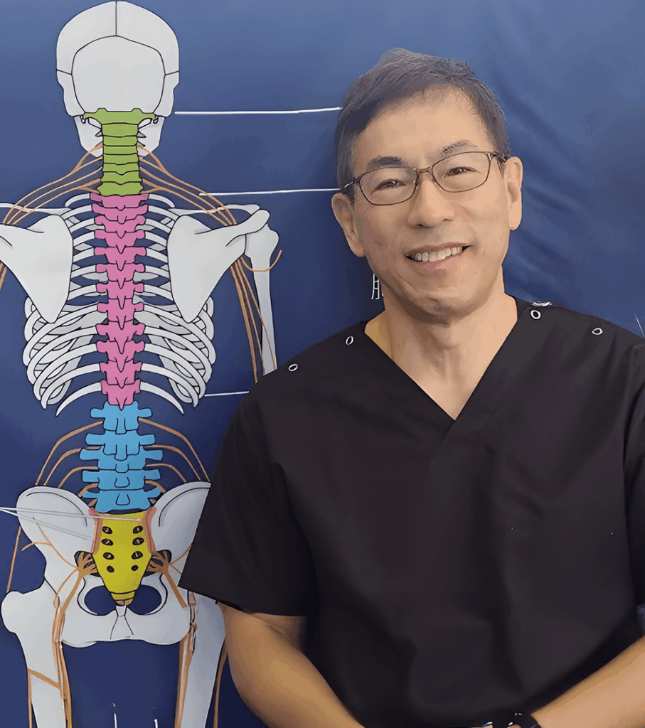 当院では、首から仙骨まで背骨を一つひとつ検査し、神経が引っ張られているズレを手技で整えることで、体が本来持っている回復力が働きやすい状態をつくります。シニアヨガ25年の経験と、体を改善するためのヨガ指導を10年以上積み重ね、3,000人以上の方と向き合ってきた院長が、あなたの体の状態を一つひとつ確かめながら施術を行い、